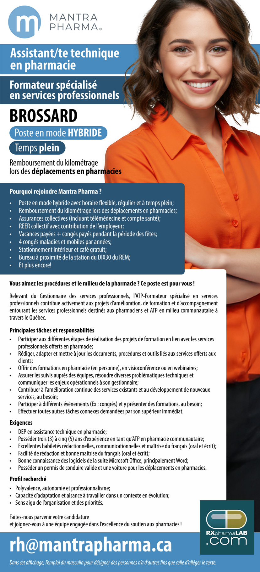 Ces éléments ne peuvent être modifiés en aucun cas, et les logos de RXpharmaLAB, emploiSANTEquebec et/ou JobLynx.ca doivent rester visibles.