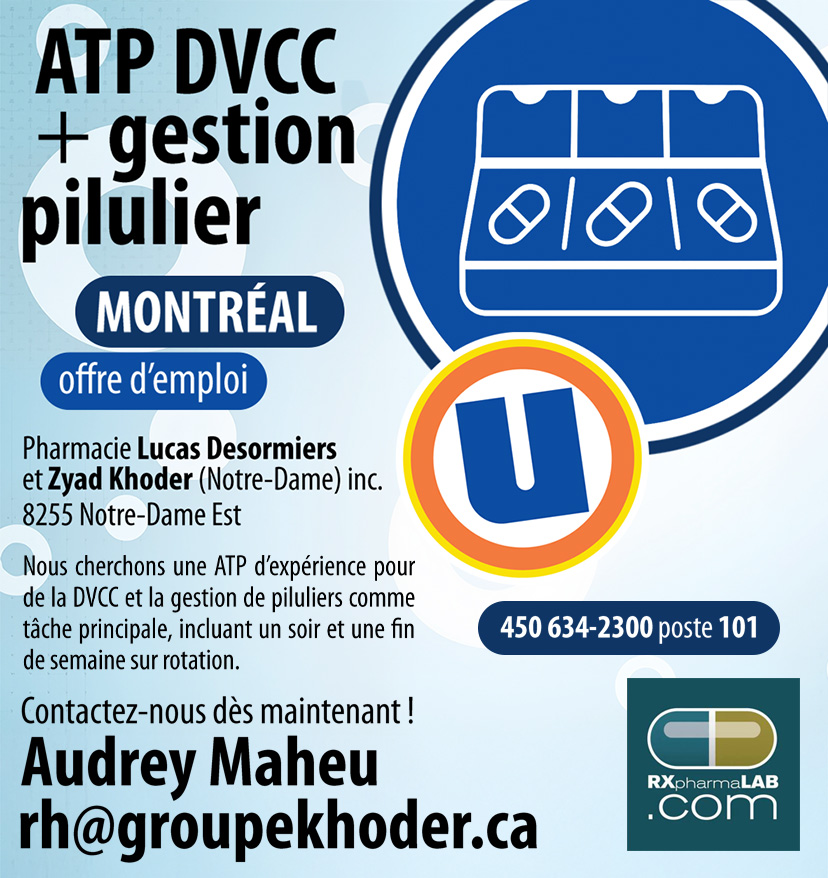 Pharmacien/ne recherché(e) à Laval – Petite pharmacie clinique, bel horaire flexible et environnement humain!